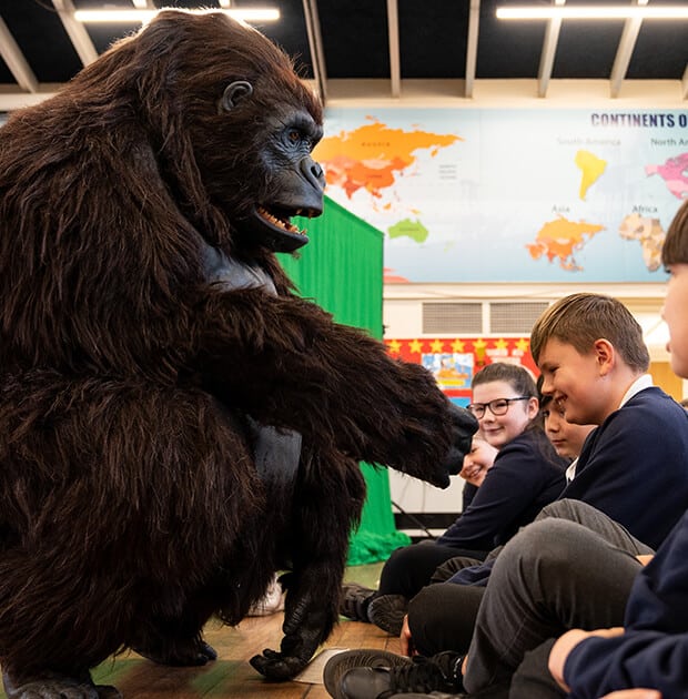 The first workshop is when the children will come face to face with Thomas the Gorilla or Fito the Orangutan, and will be immersed in a story following their lives. During the stories, children will create an emotional attachment with Thomas or Fito and their home, exploring the positive and negative impacts of human behaviours on our world. Children will also explore a range of differentiated vocabulary that can be used to enhance learning outcomes once the workshop has finished.